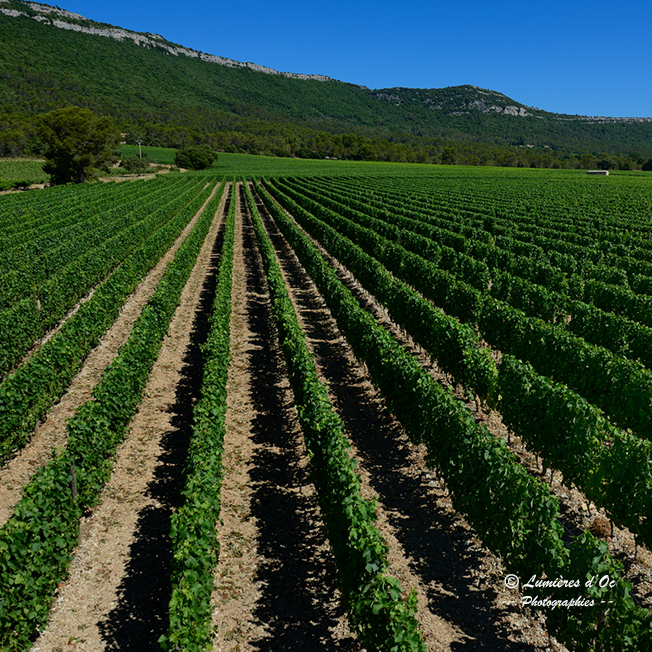 - Voici deux exemples pour vous montrer l'intérêt de savoir gérer les zones de netteté. L'un avec une profondeur de champ réduite, mettant en valeur la première bouteille tout en laissant deviner la seconde, le fond étant noyé dans un flou plus important. L'autre avec une netteté plus étendue que mérite ce vignoble pic Saint Loup, comme dans toute photo de paysage.